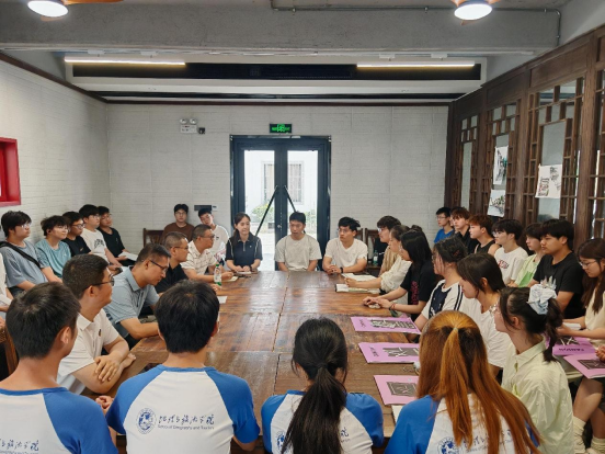 张顺一行首先观摩了同学们的实习实践成果汇报。在随后的座谈会上,同学们表示,在黄山黟县独特的地理与人文环境中,不仅深化了专业知识应用能力,提升了专业技能,更收获了珍贵的实践经验和同学间真挚的情谊。这段沉浸式的学习生活经历让大家受益匪浅。韩会然寄语实践团队的同学们,要发挥多学科融合的优势,勇于探索,争取在实践中产出高质量成果。付勇鼓励同学们珍惜宝贵的实践机会,在参与中学习,在挑战中成长,将实践所得内化为个人成长的养分。