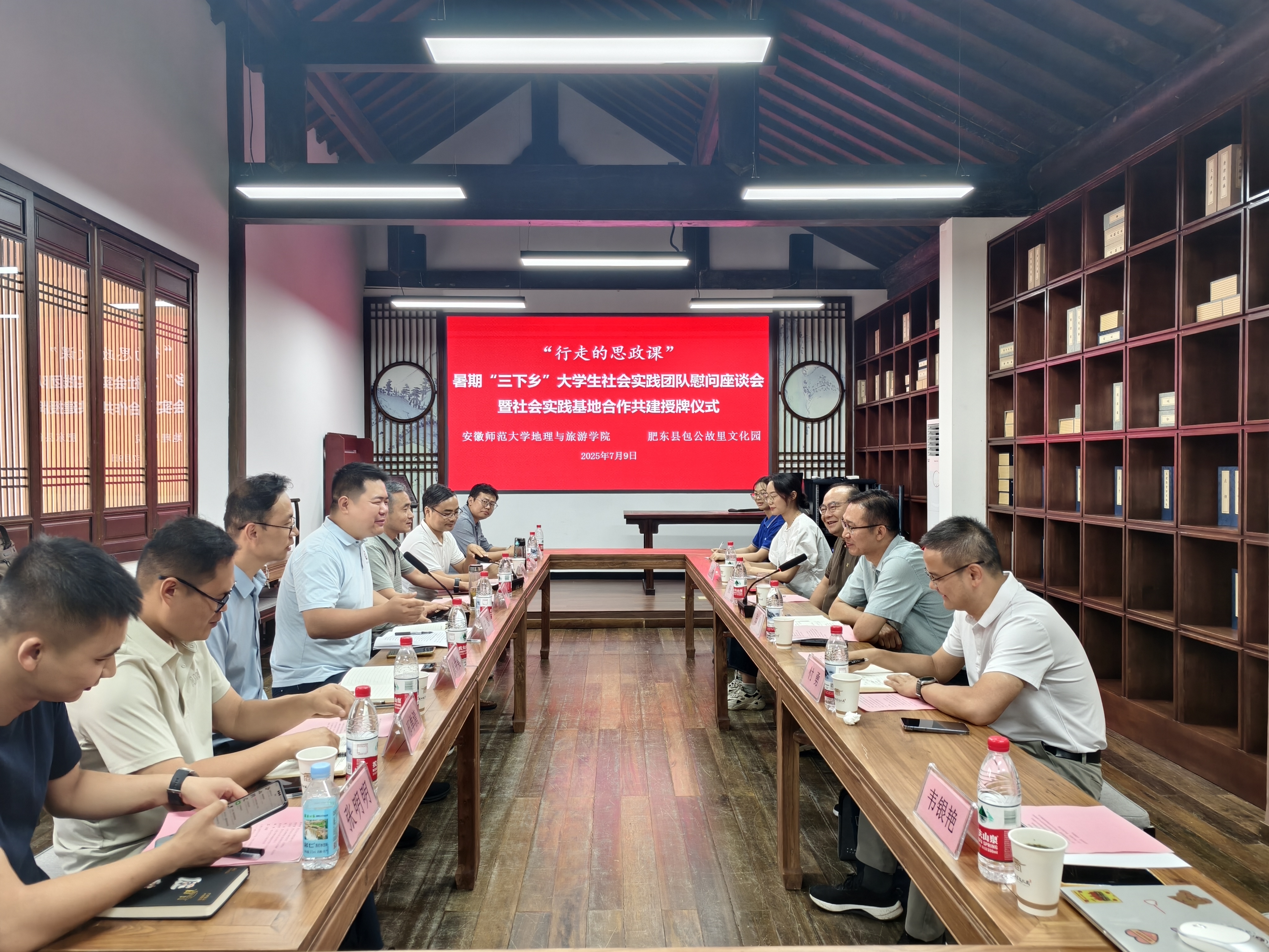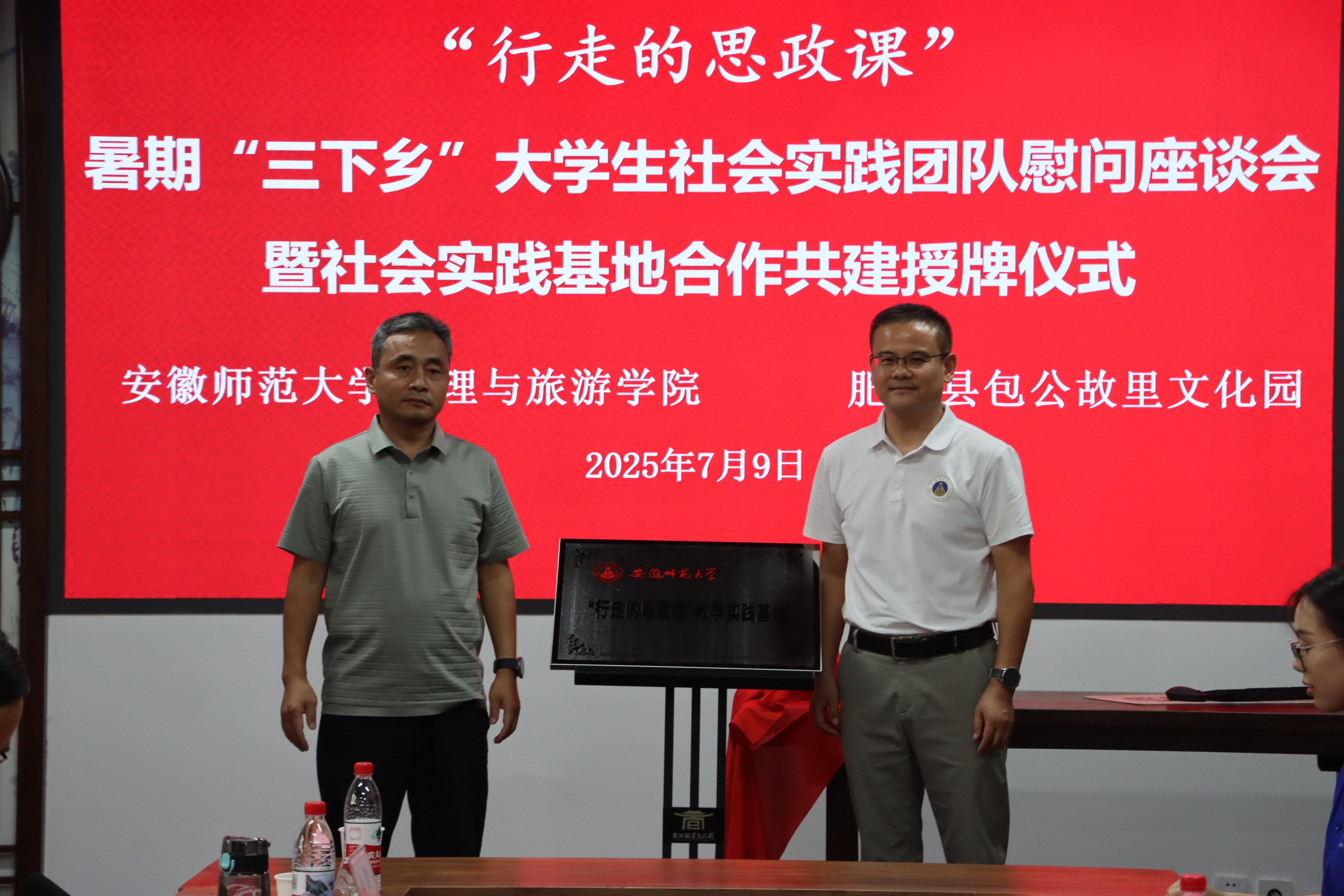 赴合肥“正气庐州路,青春信仰行”社会实践团队慰问座谈会暨社会实践基地合作共建授牌仪式。活动由合肥东部新城文旅传媒有限公司副总经理王家发主持。