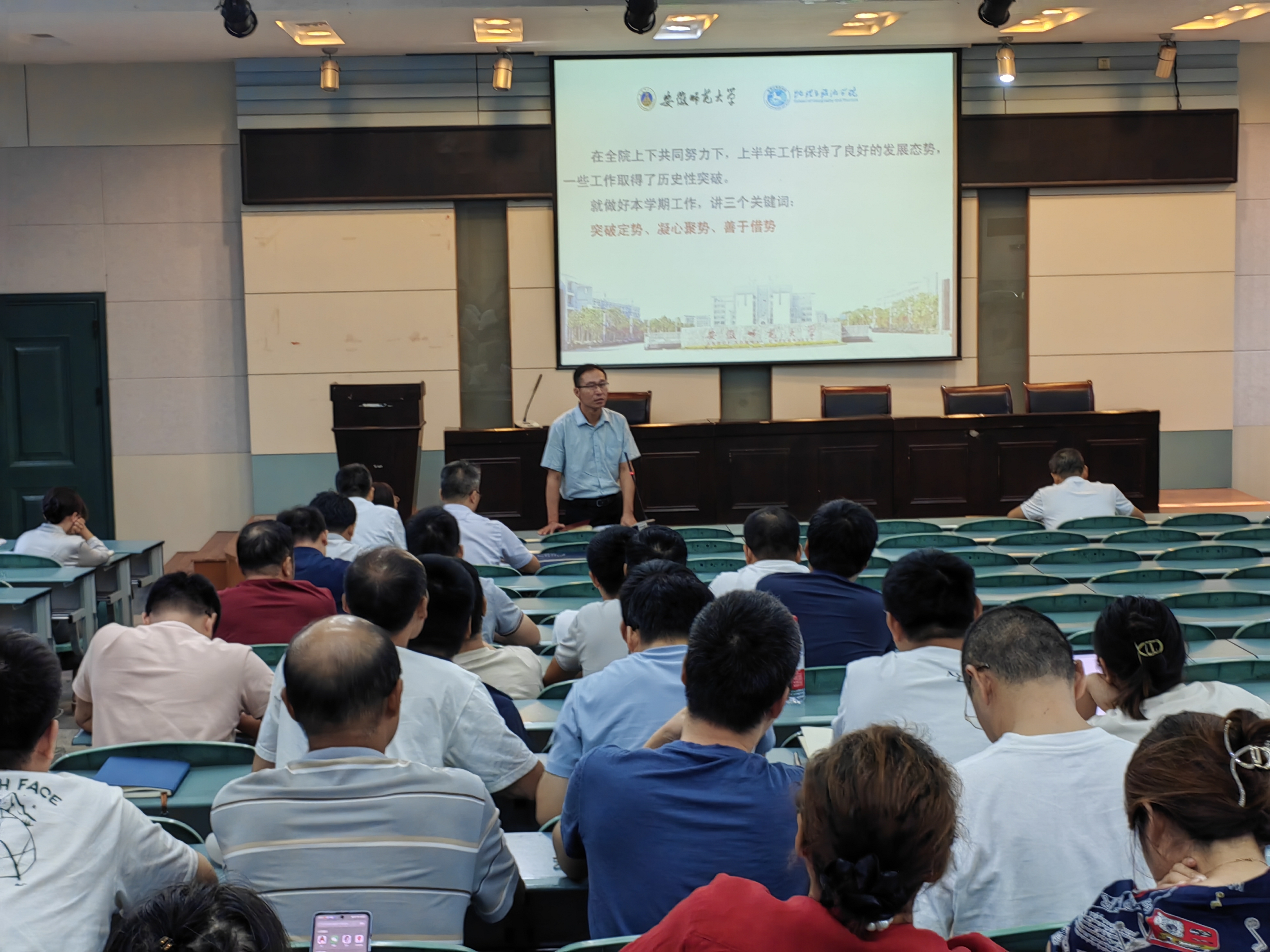 党政领导班子成员、全体教职工参加会议。会议由院长方凤满主持。