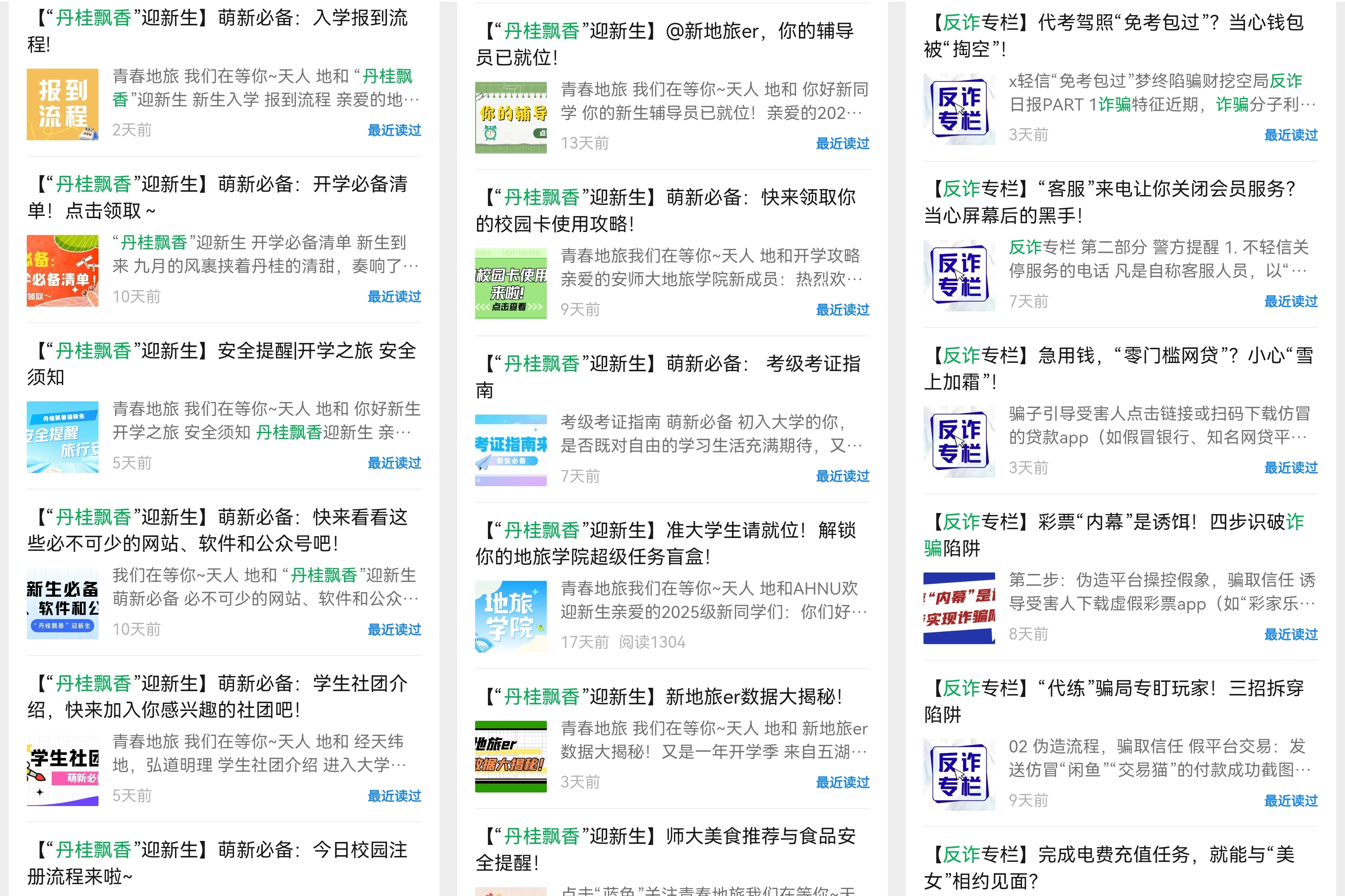 于新生入学前全面启动筹备工作,构建起线上线下一体化迎新服务体系。线上通过官方微信公众号持续发布“丹桂飘香迎新生”系列推送,内容涵盖校园导览、专业初步认知、学长学姐建言、电信反诈等,帮助新生提前熟悉大学生活,建立对色情网站