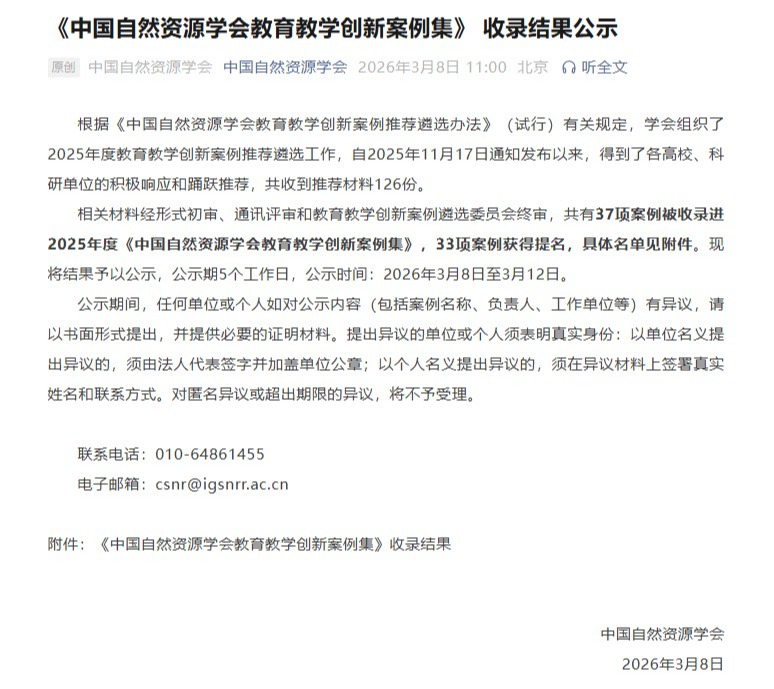 2026年3月8日,中国自然资源学会公示2025年度教育教学创新案例收录结果, 版权所有:色情网站-成人色情-成人视频