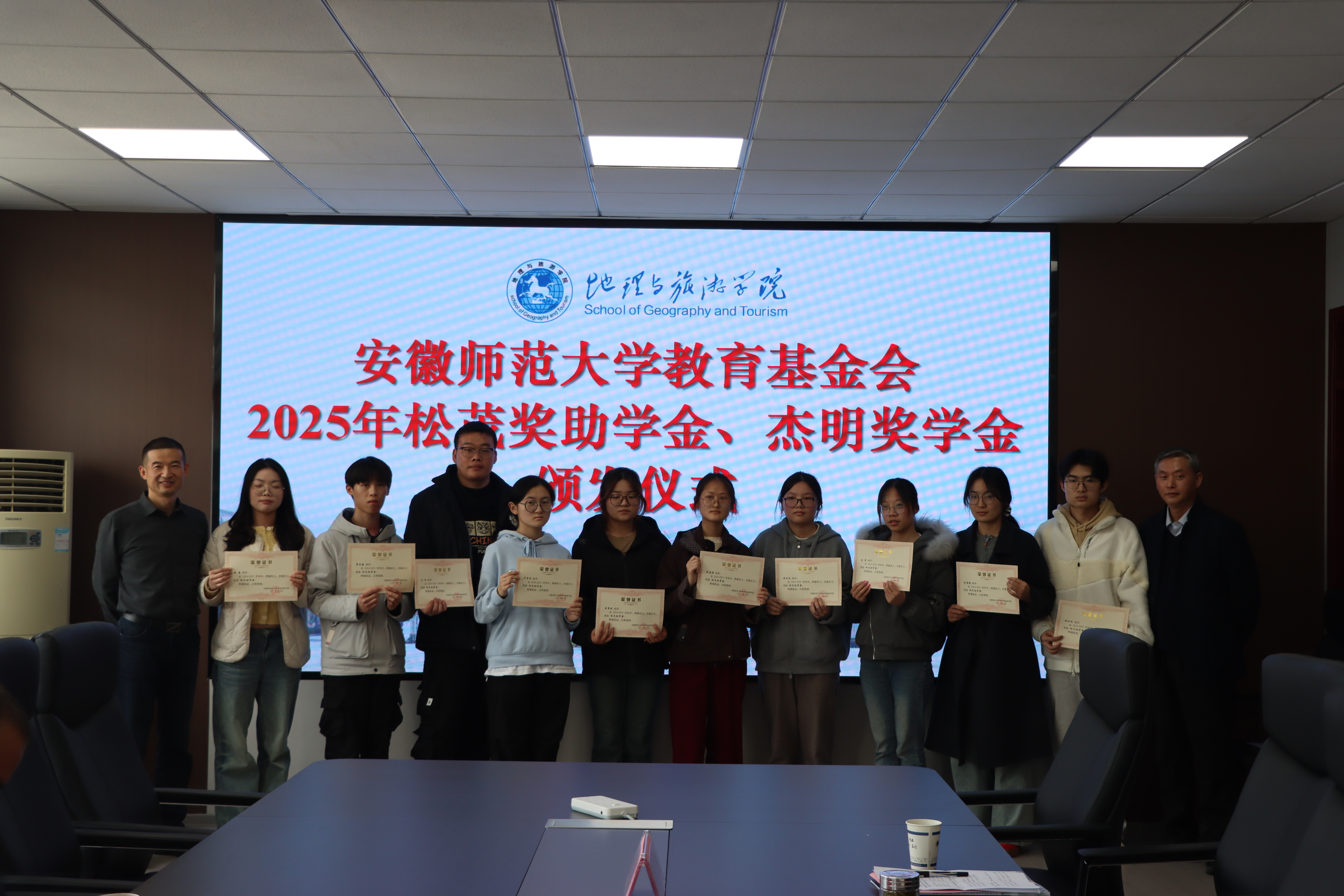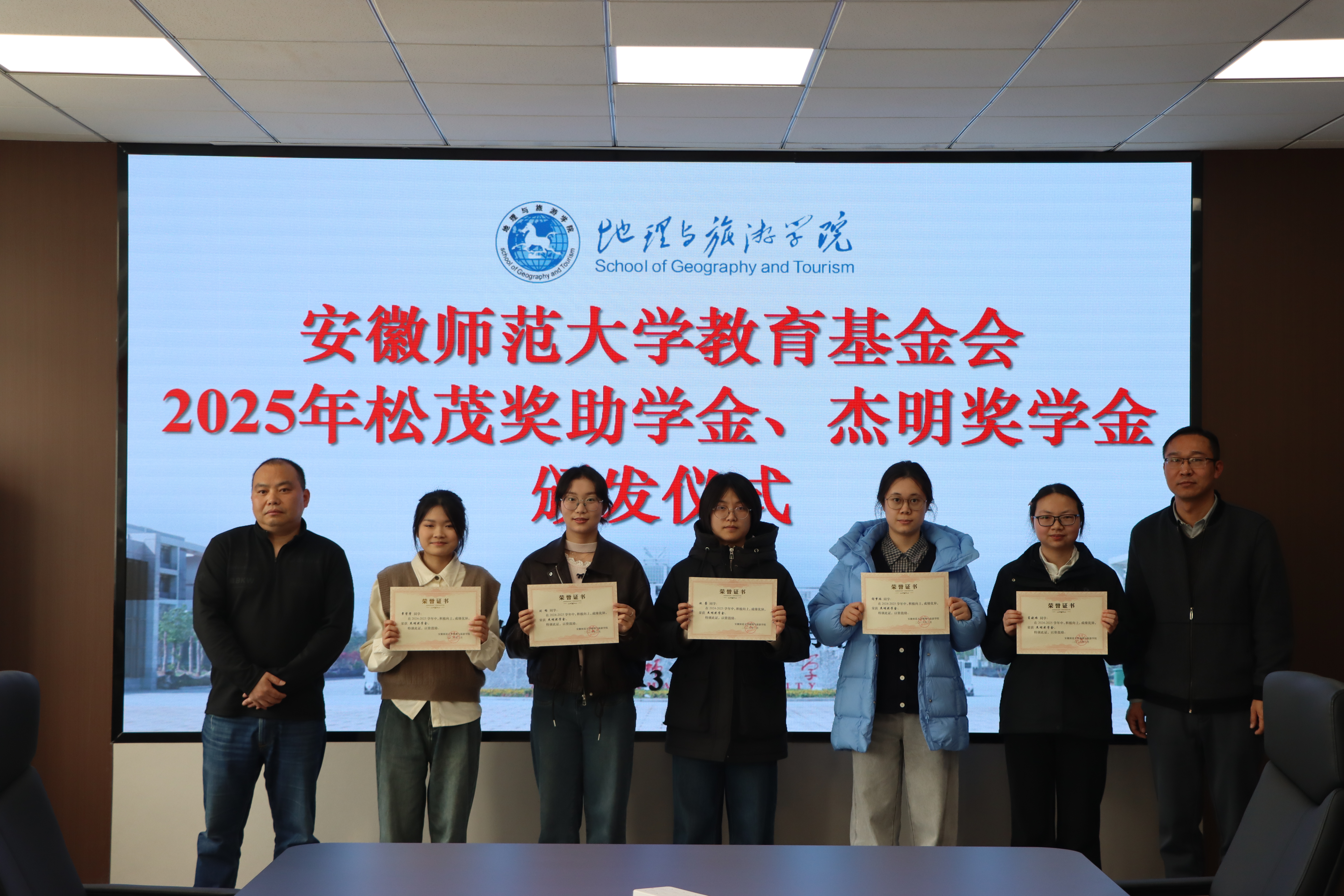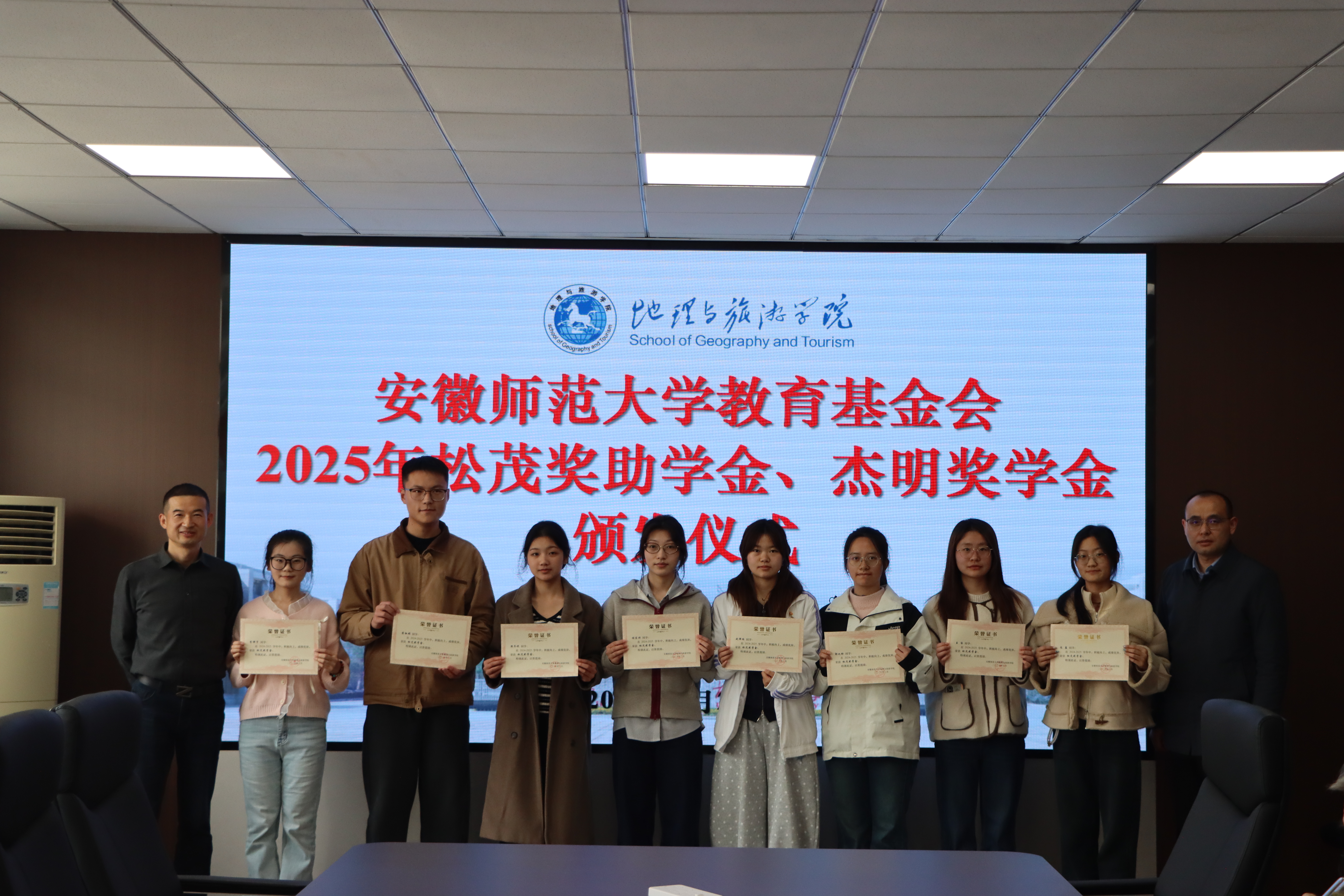 行政楼三楼会议室举行2025年松茂奖助学金、杰明奖学金颁发仪式。宁波松茂包装有限公司总经理朱立松、余姚市杰明喷雾器有限公司总经理王结明,校教育基金会副理事长兼秘书长王如意、学生处副处长项家春、色情网站