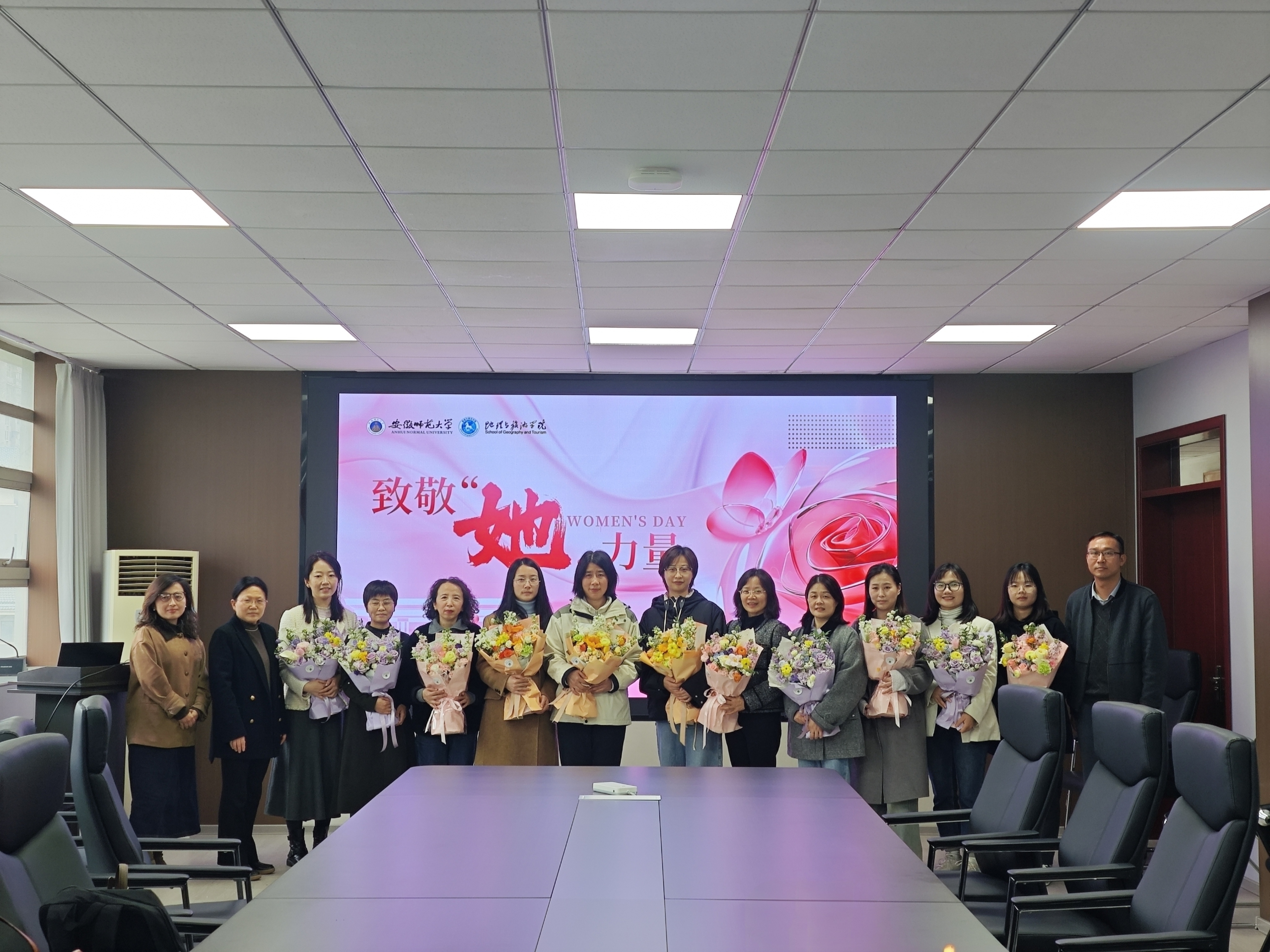 座谈结束后,与会领导为各位女教职工代表送上鲜花和祝福,并合影留念。整个活动气氛温馨热烈,不时响起欢快的笑声,让大家切身感受到了工会的贴心和温暖,更加安心从教、潜心育人、舒心生活。