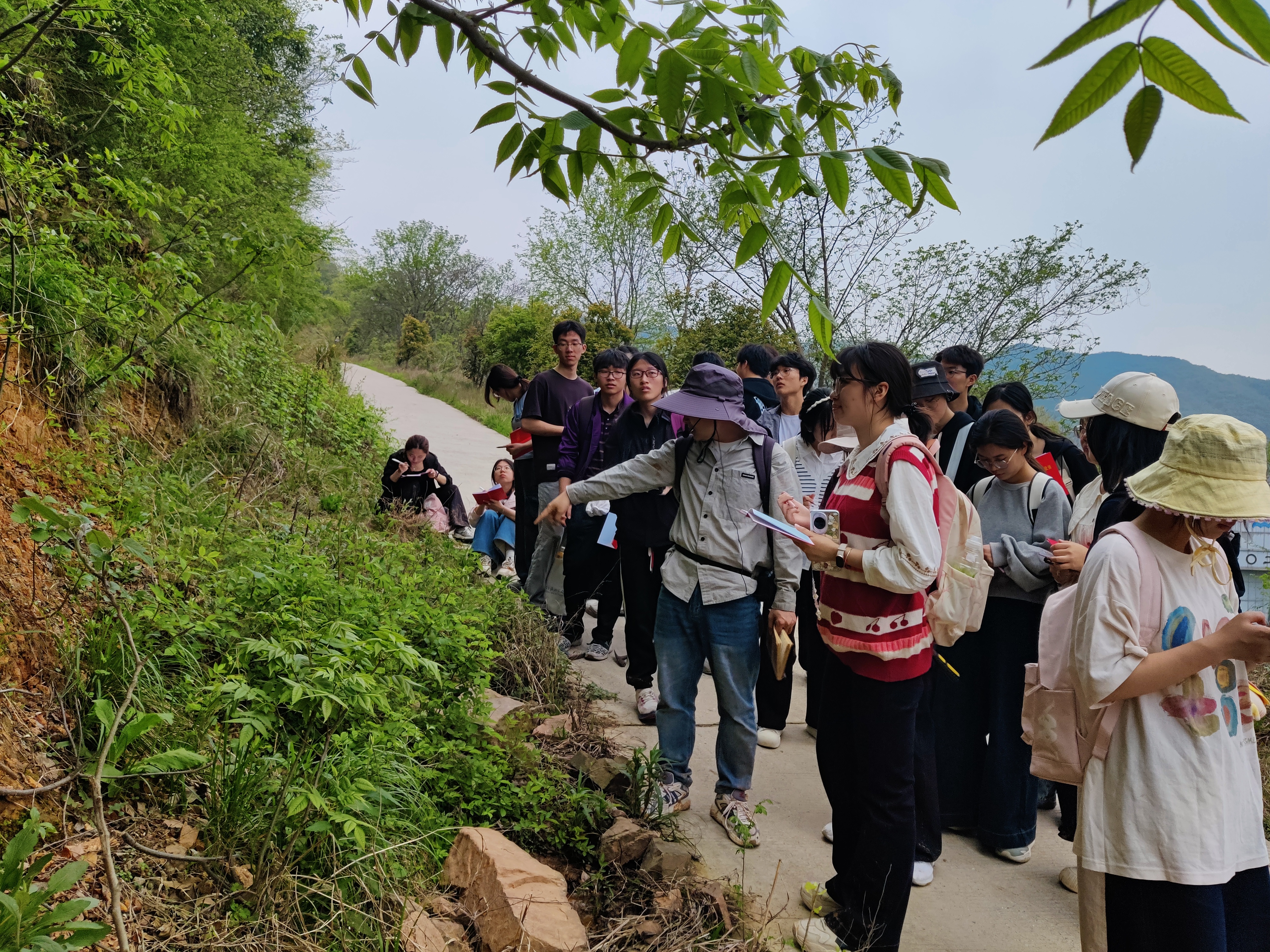 在7410工厂教学点(中国人民解放军第7410工厂),开展沉浸式国防思政教育。指导教师向同学讲述工厂扎根巢湖、服务国防的创业故事,感悟几代军工人“国家利益至上、质量就是生命”的坚守与奉献。从大地构造到国防装备,从地质报国到军工强国,同学们在实景感悟中深刻理解:守护大好河山,既要读懂地球密码,更要筑牢国家安全屏障,家国情怀在军工精神与地质使命的交融中愈发坚定。在鹅头岩教学点,师生们沿着崎岖山径攀登,直面亿万年地壳运动造就的逆冲断层奇观。实习指导教师现场讲解断层构造与区域地质安全、防灾减灾、工程建设的密切关联,引导学生从岩石纹理读懂大地密码,从地质变迁感悟山河壮丽。大家围坐岩下,对照擦痕走向判断断层性质,绘制构造素描,在实景教学中把专业知识与国土安全、生态保护紧密相连,爱国情怀在地质探索中自然升华。
