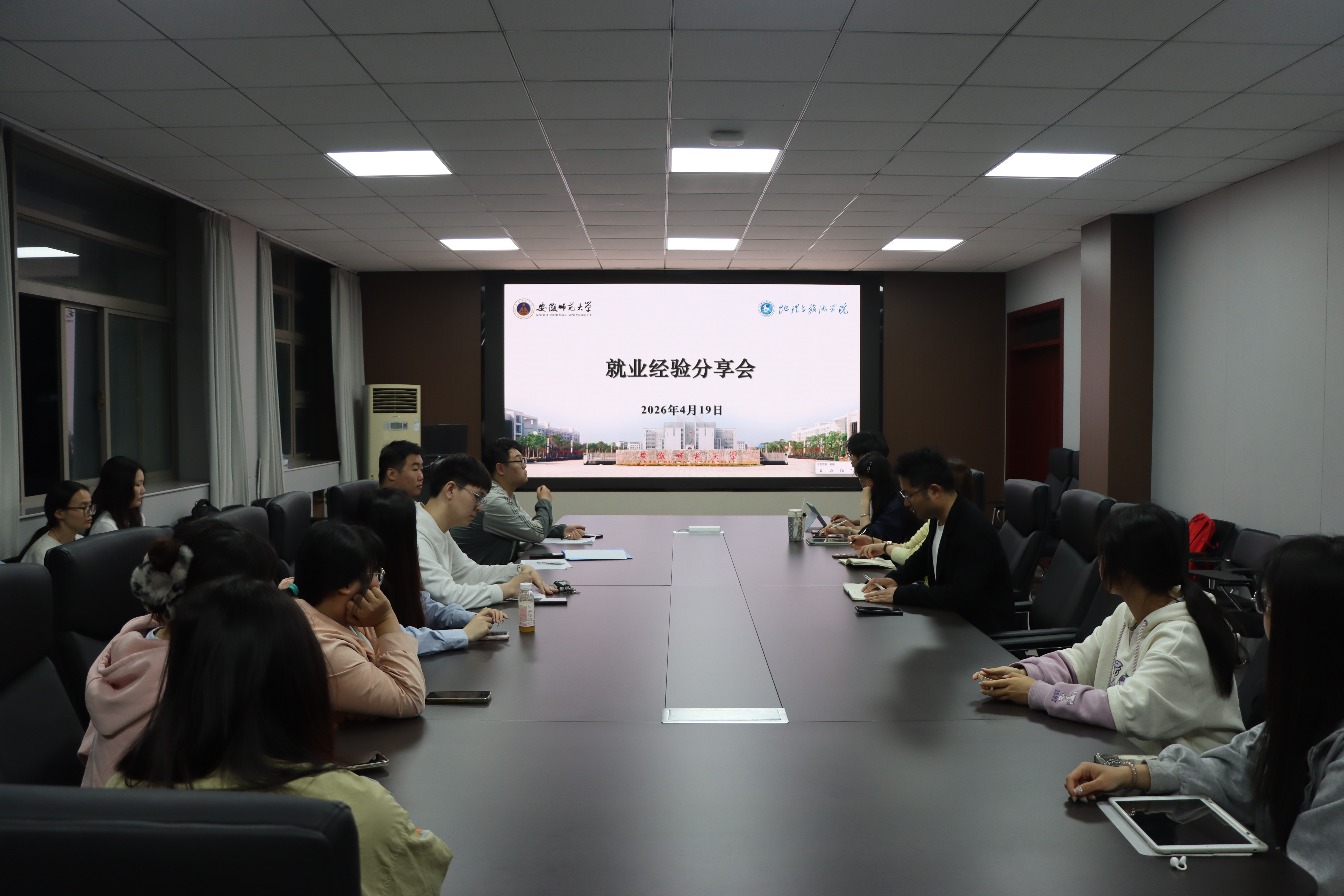 行政楼三楼会议室举办就业经验分享会。会议采取线上线下同步方式进行,由土地资源管理专业教师程超主持,特邀土地资源管理专业2025届本科毕业生吴双优主讲,面向全体同学分享在职考公与就业的成长历程和宝贵经验。