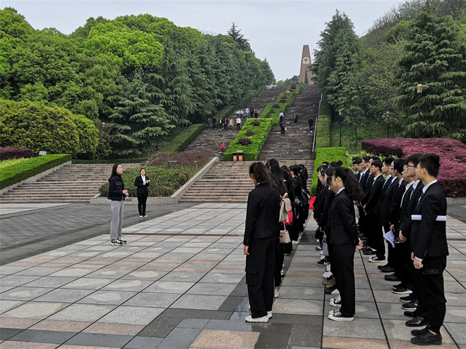 4月13日上午七时许,2018级旅游管理专业全体团员于校花津大礼堂门口集合,同学们整齐划一地身着院服,在相互帮助下认真地佩戴上团徽,手捧鲜花分组列队点名,有序乘车前往烈士陵园,无一人迟到、无一人掉队,为此行奠定了庄严而又神圣的基调。
