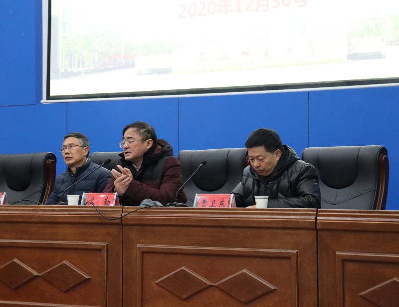 院党委书记贾冠忠提就业工作要求。他详细介绍了2021届毕业生考研、就业、考公的政策和形势,就业定位问题,就业安全问题和就业自信问题等。他指出,受到高等教育普及化、疫情防控常态化、经济转型升级等多重因素影响,今年毕业生考研、就业、考公形势比往年更为严峻;他指出职业定位要与个人能力相匹配,要正确认识就业形势、及时抓住就业机会并在工作岗位上坚持、不懈努力;他强调同学们要继续严格遵守疫情防控要求,在求职过程中谨防传销组织的诱惑;最后他鼓励同学们要就业自信,在严峻的就业形势下,仍要相信自己的力量,发掘自己的优势,勇敢的面对种种挑战。