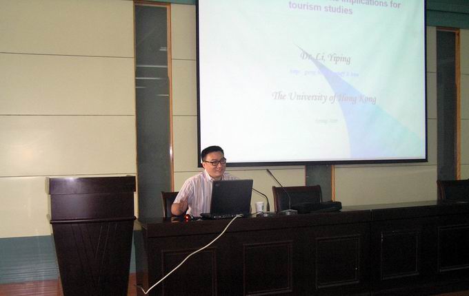 实验楼101教室作了题为“当代休闲文化的发展及其对旅游学习和研究的启示”的学术报告,近300名师生参加了报告会。李一平教授就什么是休闲、学术界关于休闲的主要观点、休闲产业的经济利益以及生态旅游等问题进行了深入浅出、图文并茂的讲解,系统论述了休闲对旅游学习和研究的启示,并回答了同学们的提问,大量生动的案例扩大了同学们的学术视野,激发了学习的热情,赢得了同学们的阵阵掌声。