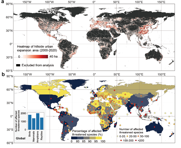 近日,我院施开放教授与其合作者在国际知名学术期刊《Nature Cities》上发表题为《Extensive terrestrial biodiversity threats from global hillside urban expansion》的研究论文。施开放教授为论文的第一作者,华东师范大学余柏蒗教授,色情网站