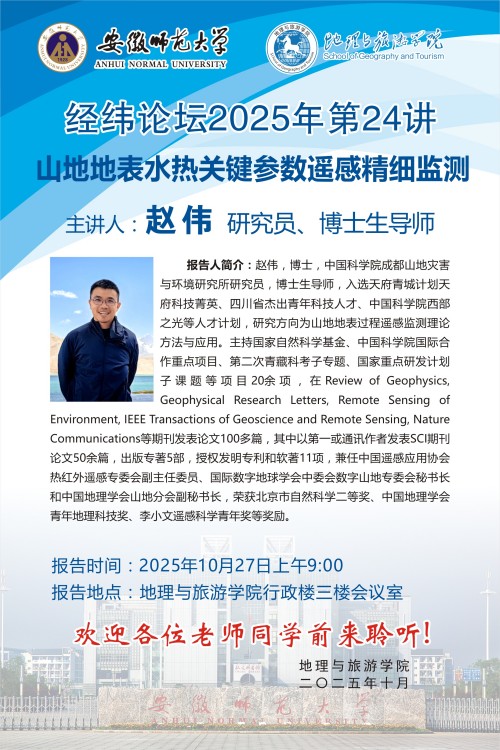 【学术预告】经纬论坛第90讲:山地地表水热关键参数遥感精细监测