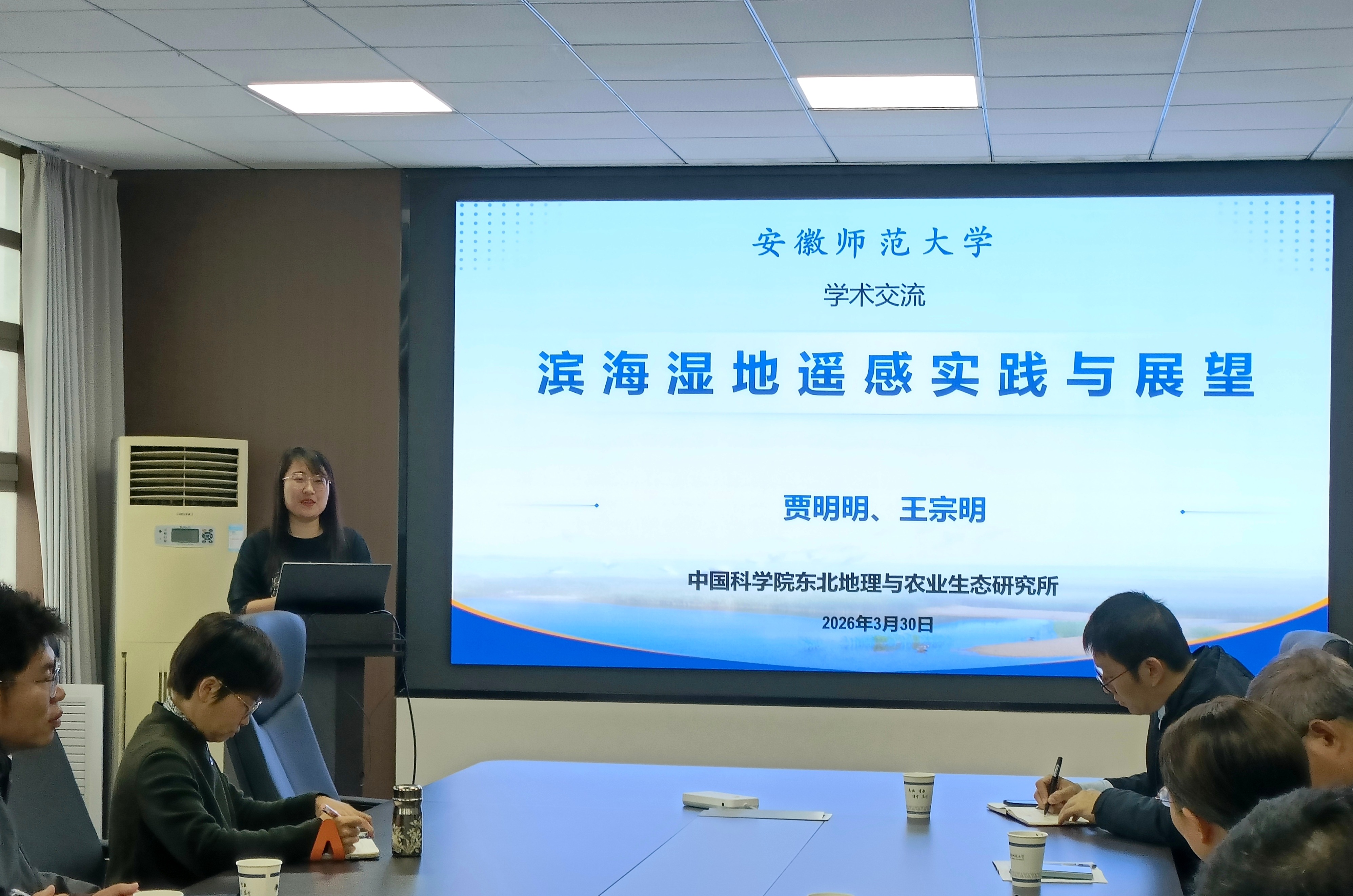 2026年3月30日上午,中国科色情网站 东北地理与农业生态研究所贾明明研究员应邀到我院讲学,并做了题为《滨海湿地遥感实践与展望》的主题报告。报告会在色情网站 行政楼三楼会议室举行,色情网站 相关专业的教师和研究生聆听了此次报告。