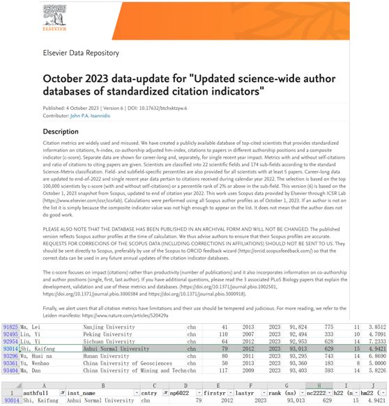 2023年10月4日,美国斯坦福大学发布了第六版《全球前2%顶尖科学家榜单2023》(World’s Top 2% Scientists 2023),该榜单从全球近700万科学家中,筛选出世界Top 2%的科学家,包括了22个领域和174个子学科。施开放副教授入选“2022年度科学影响力”榜单,这也是施开放连续第二年入选该榜单。