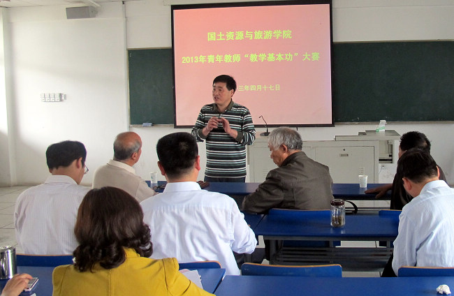 地理教学论专家李俊峰副教授对本次比赛进行了说课指导。比赛最终评出一、二、三等奖若干名,并择优推荐两名教师参加学校2013年青年教师教学基本功大赛。