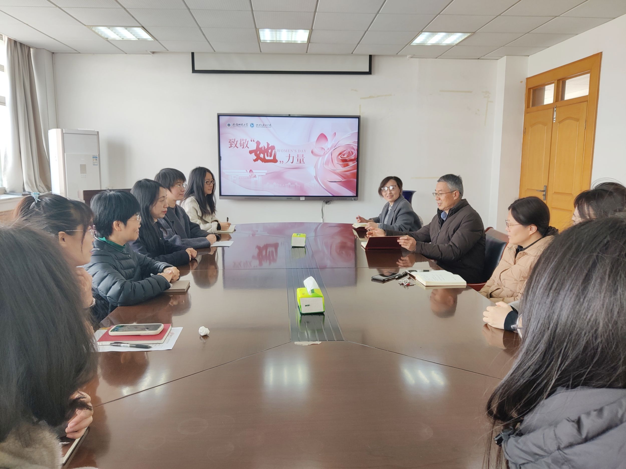 党委书记贾冠忠、院长方凤满、行政副院长汪文文和女教职工代表参加活动。活动由汪文文主持。